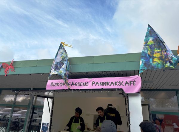 Det bästa är att caféet turnerar runt och kan ta med sig den härliga stämningen till olika platser i Biskopsgården. Musiken i högtalarna och doften av nygräddade pannkakor får folk att komma hit och snacka med varandra. Det blir som en mysig fika-oas.